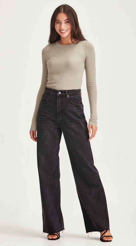 A classic 90's Wide Leg jean that fits slimmer to the waist & body with a relaxed leg and wider raw hem that can be cut to length. Check out our cut to length video below.