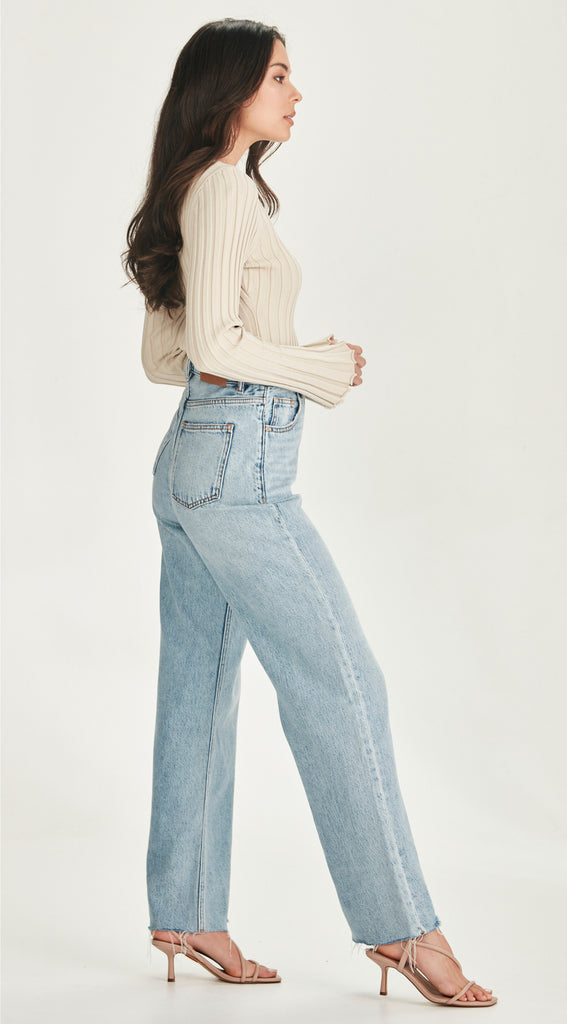 Part of our new premium collection Vienna is in a very soft - flowy - non stretch denim that fits slimmer to the waist & body with a relaxed leg and wider raw hem that can be cut to length.