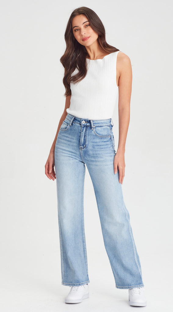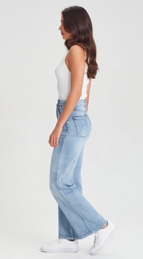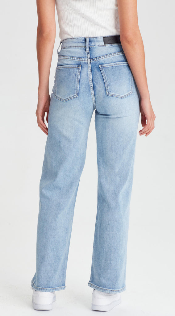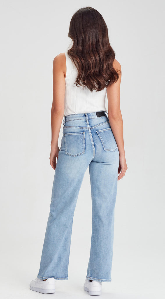 Wendy fits slimmer to the waist & body with a relaxed and wider leg. In a medium stretch, premium denim and perfect light blue colour.
