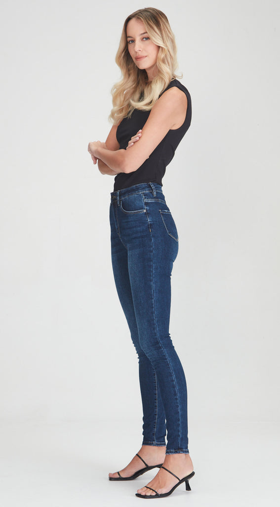 Classic Dark Blue is a high rise jean in an ultra stretch denim soft stretch denim with 4 way hold, stretch and recovery technology.