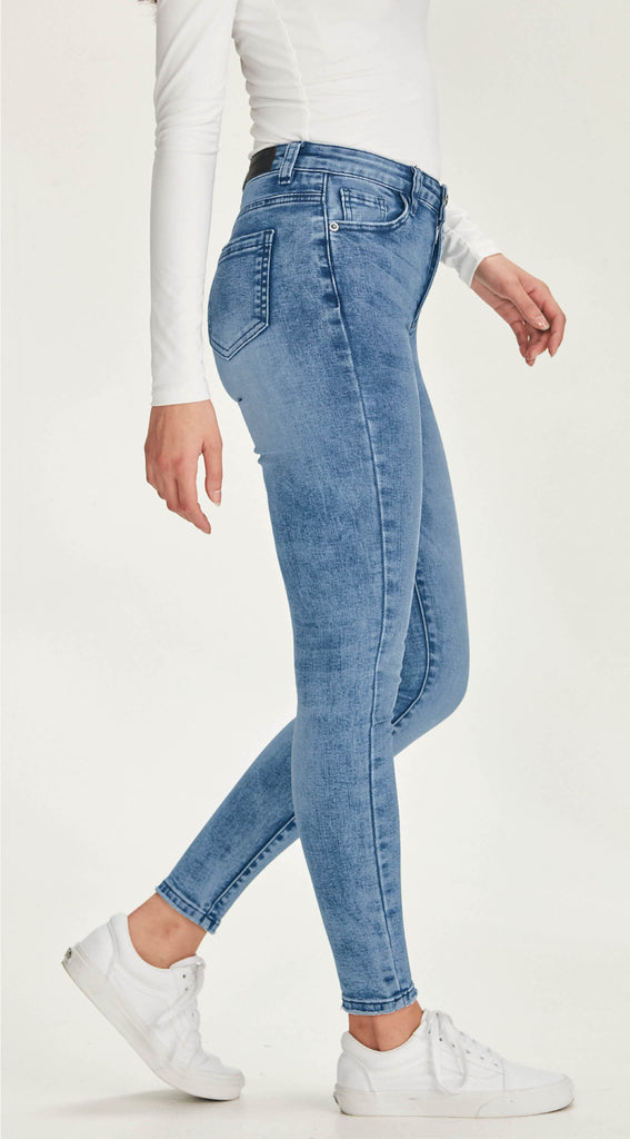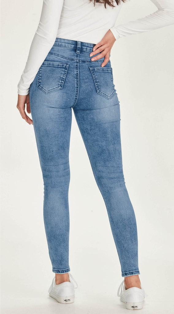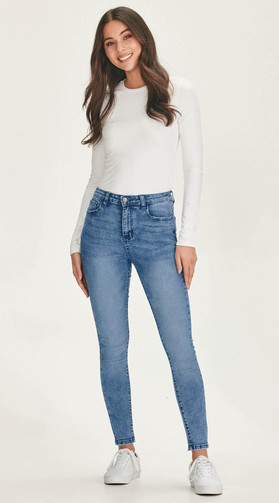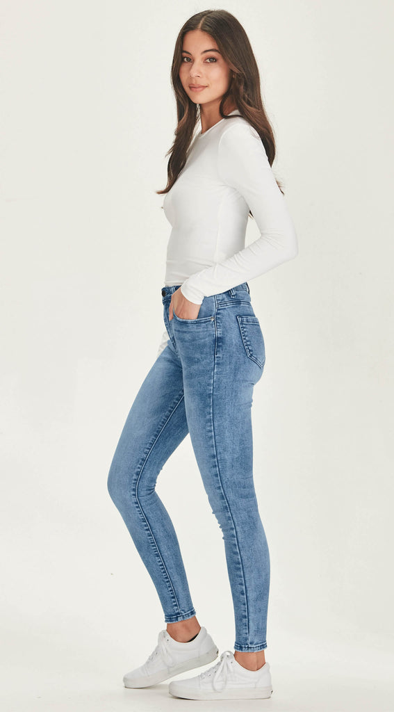 Mid to high waisted stretch denim skinny jean. In a super stretch & comfortable denim which holds firm where it needs to.