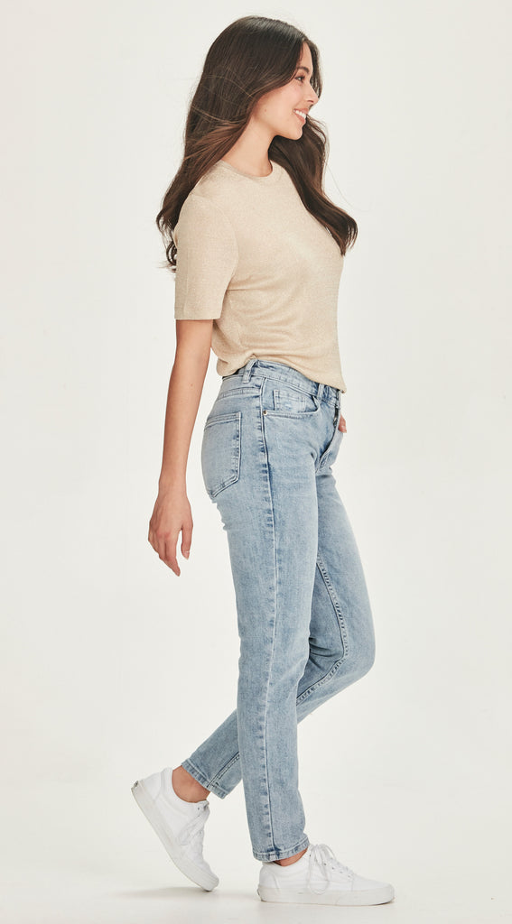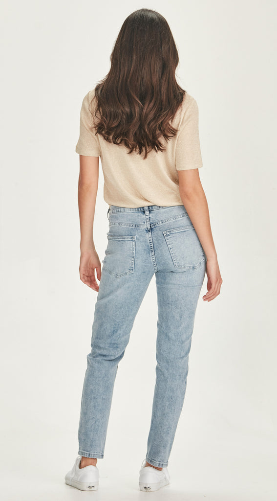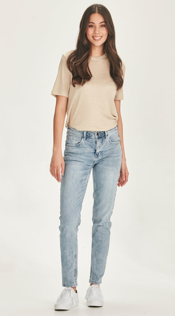 With some lightly scratched detail on the front and a tapered straight leg fit. Also looks great rolled up. Check out our fit video below.